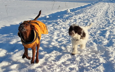 Vuodenvaihdetta tämä lauma vietti Kurikassa, maalla paossa paukkuja. Pinserillä taisi olla elämänsä ihanin uusivuosi, koska sai painia pikkukoiran kanssa ja hyvässä doupissa ei pamauksetkaan pelottanut. Rallia ei paukut stressaa (Huh!) ja loma toi pennulle kaikenlaista uutta ja mielenkiintoista.